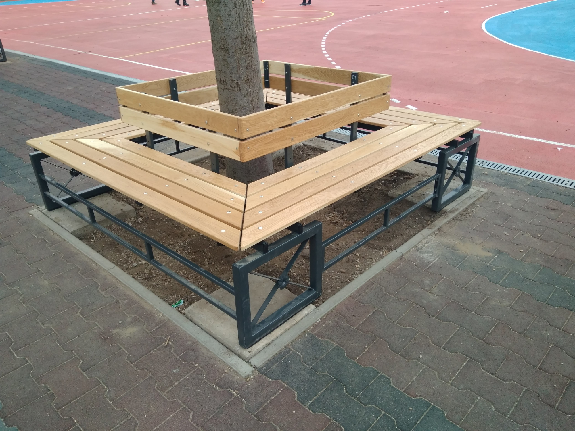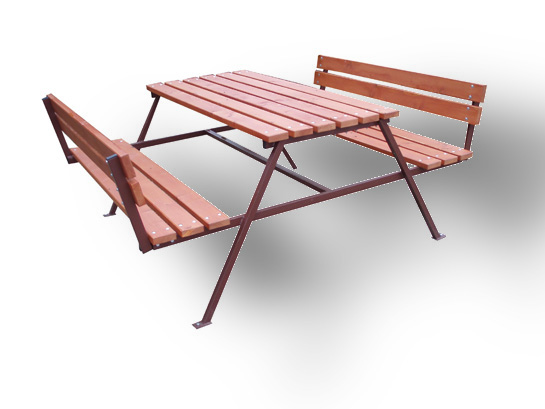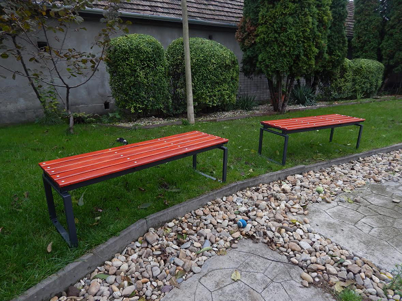 Fémváz, színterezett ülőfelület, borovifenyő, kültéri lazúrral kezelve
